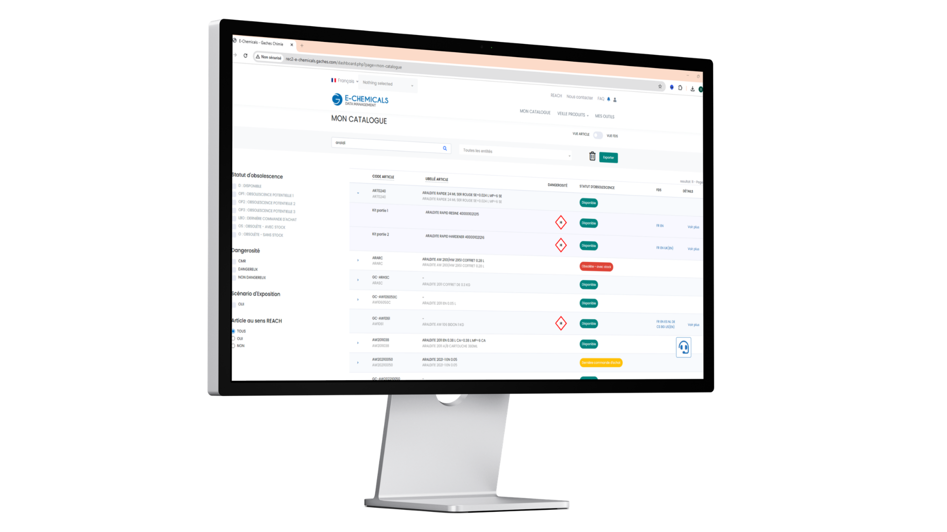Enfin, la veille réglementaire nous permet d’identifier rapidement les produits contenant des substances problématiques et d’engager des démarches de substitution. Le rattachement des produits aux catalogues rend ce suivi fluide pour les utilisateurs avertis (réseau prévention et technique).